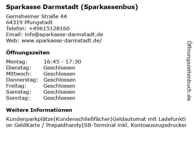 Branchen & Suchbegriffe zu Sparkasse Darmstadt und Dieburg (ehem. SK Darmstadt) (Sparkassenbus):ehem., sk, sparkasse, sparkassenbus |