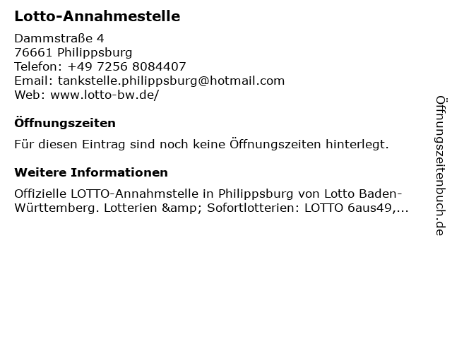 | Adresse Lotto-Annahmestelle in Philippsburg anzeigen |