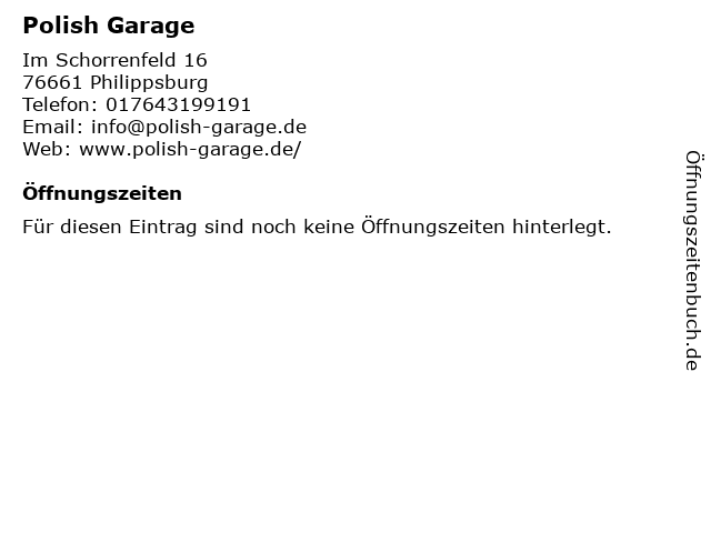 Öffnungszeiten Polish Garage in Philippsburg anzeigen | |