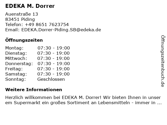 | Öffnungszeiten EDEKA M. Dorrer in Piding anzeigen | |
