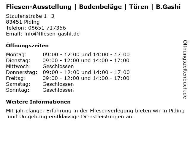 Branchen & Suchbegriffe zu Fliesen-Ausstellung | Bodenbeläge | Türen | B.Gashi:ausstellung, b.gashi, bodenbeläge, fliesen, türen |