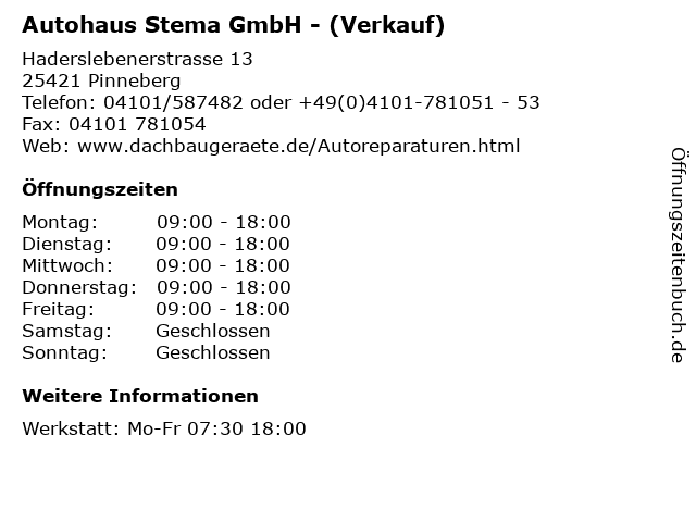 Branchen & Suchbegriffe zu Autohaus Stema GmbH - (Verkauf):07:30, 18:00, autohandel, autohaus, carosserie, fr, mo, service, stema, verkauf, werkstatt, werkstatt: |