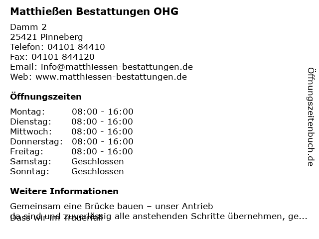 Öffnungszeiten Matthießen Bestattungen OHG in Pinneberg anzeigen | |