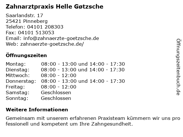 1 Schultz Sabine Dr. med. dent. Zahnarztpraxis (Entfernung: 0,59 km) Heinrich-Christiansen-Str. 41, 25421 Pinneberg 6 |
