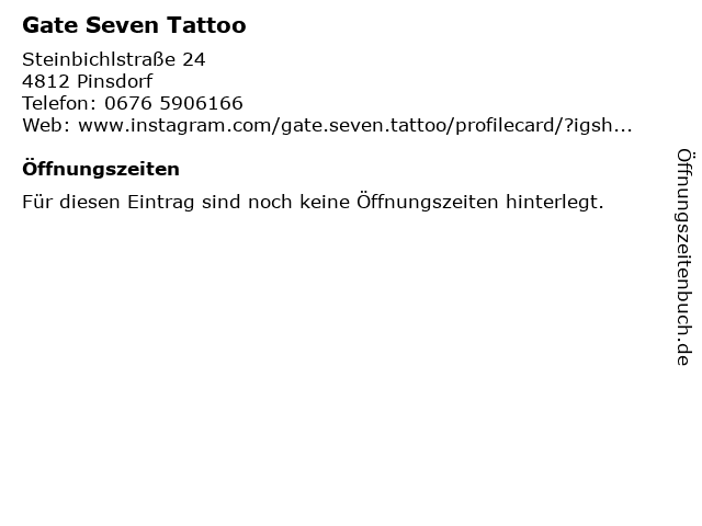| Öffnungszeiten Gate Seven Tattoo in Pinsdorf anzeigen | |