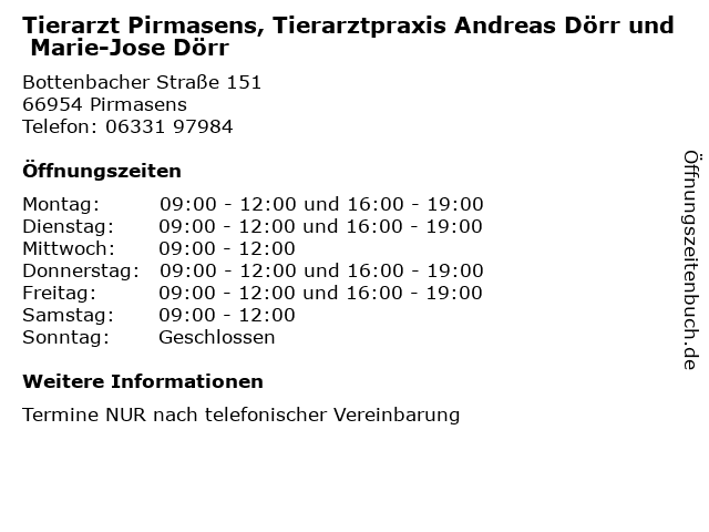 Branchen & Suchbegriffe zu Tierarzt Pirmasens, Tierarztpraxis Andreas Dörr und Marie-Jose Dörr:andreas, dörr, jose, marie, tierarzt, tierarztpraxis |