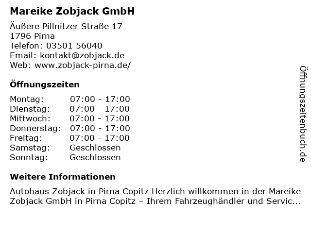Öffnungszeiten Mareike Zobjack GmbH in Pirna anzeigen | |