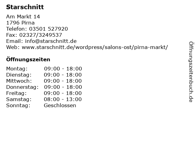 | Öffnungszeiten Starschnitt in Pirna anzeigen | |
