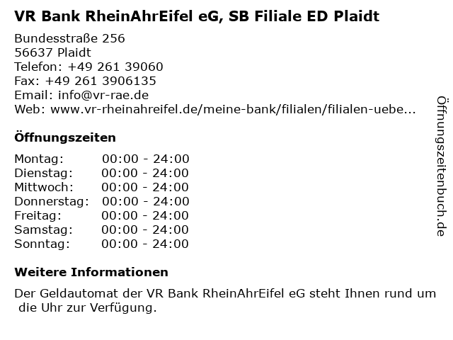 Branchen & Suchbegriffe zu VR Bank RheinAhrEifel eG, SB Filiale ED Plaidt:bank, ed, eg, geldautomat, genossenschaft, plaidt, rheinahreifel, sb, vr |