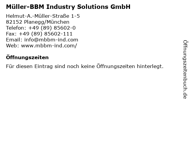 | Müller-BBM Industry Solutions GmbH anrufen | |