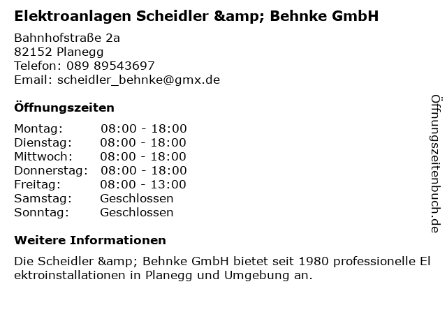Branchen & Suchbegriffe zu Elektroanlagen Scheidler & Behnke GmbH:behnke, elektroanlagen, handwerker, scheidler |