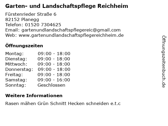 1 Garten- & Landschaftspflege Oliver Rieger (Entfernung: 3,68 km) Buchendorfer Str. 56 A, 82061 Neuried 2 Annegret Kronenwetter Garten- und Landschaftspflege (Entfernung: 5,40 km) Katzbachstraße 19, 81476 München 5 6 |