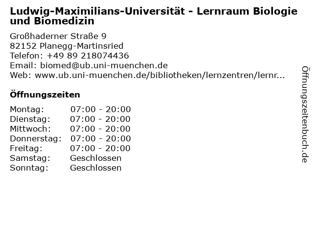 Branchen & Suchbegriffe zu Ludwig-Maximilians-Universität - Lernraum Biologie und Biomedizin:bibliothek, biologie, biomedizin, ferienkurse, lernraum, lernzentrum, ludwig, maximilians, nachhilfe, prüfungsvorbereitung, universität |