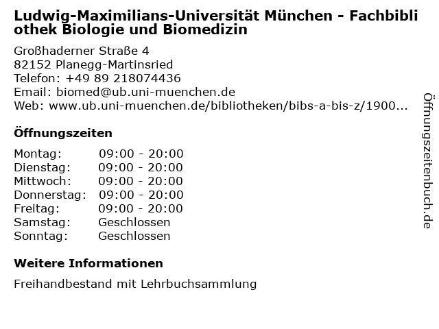 Branchen & Suchbegriffe zu Ludwig-Maximilians-Universität München - Fachbibliothek Biologie und Biomedizin:bibliothek, biologie, biomedizin, buch, buchscanner, fachbibliothek, literaturen, ludwig, maximilians, sprachen, universität |