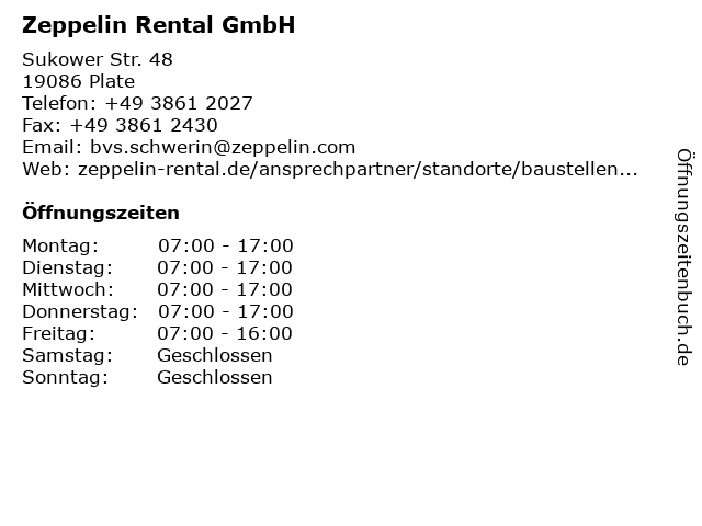 | Öffnungszeiten Zeppelin Rental GmbH in Plate anzeigen | |