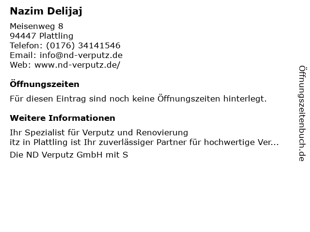 | Öffnungszeiten Nazim Delijaj in Plattling anzeigen | |