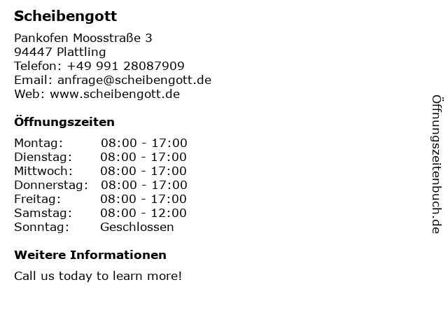| Öffnungszeiten Scheibengott in Plattling anzeigen | |