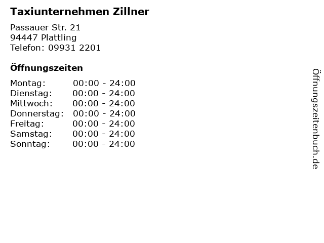 | Öffnungszeiten Taxiunternehmen Zillner in Plattling anzeigen | |