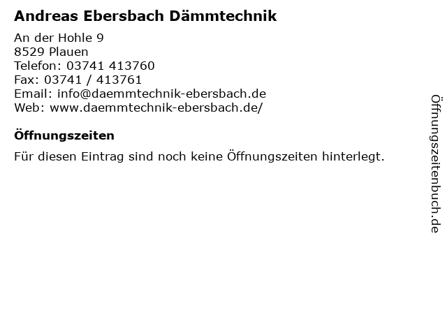 | Öffnungszeiten Andreas Ebersbach Dämmtechnik in Plauen anzeigen | |