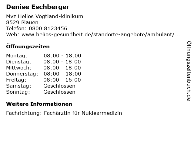 | Öffnungszeiten Denise Eschberger in Plauen anzeigen | |