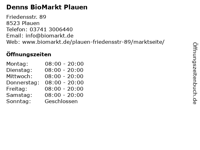 | Öffnungszeiten Denns BioMarkt Plauen in Plauen anzeigen | |