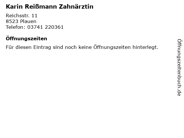 | Öffnungszeiten Karin Reißmann Zahnärztin in Plauen anzeigen | |
