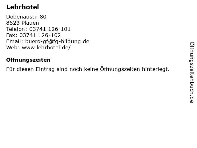 | Öffnungszeiten Lehrhotel in Plauen anzeigen | |