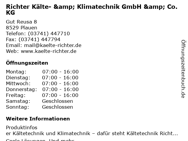 5 Kühlanlagenbau Süd-Ost GmbH Büro Kälte- und Klimatechnik (Entfernung: 3,18 km) Rathenauplatz 1, 08525 Plauen 6 |