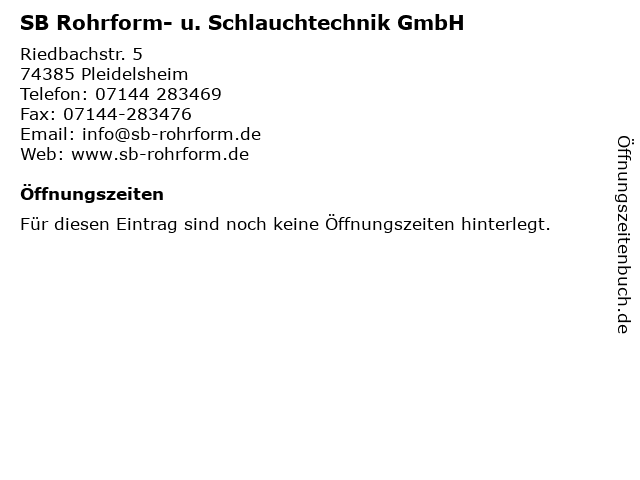 | SB Rohrform- u. Schlauchtechnik GmbH anrufen | |