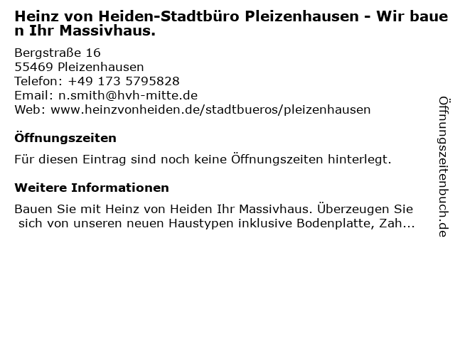 Heinz von Heiden-Stadtbüro Pleizenhausen - Wir bauen Ihr Massivhaus. anrufen | |