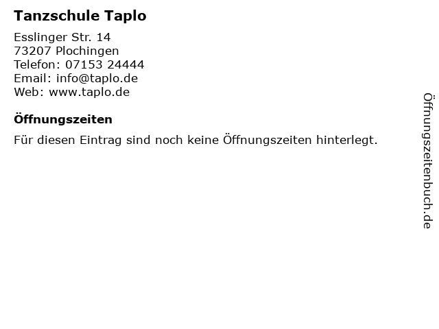 | Öffnungszeiten Tanzschule Taplo in Plochingen anzeigen | |