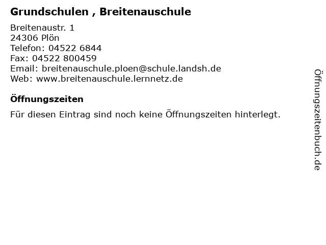 | Öffnungszeiten Grundschulen , Breitenauschule in Plön anzeigen | |