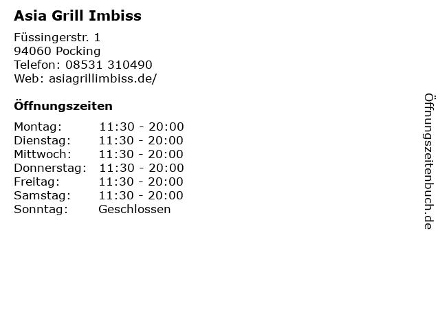 Öffnungszeiten Asia Grill Imbiss in Pocking anzeigen | |
