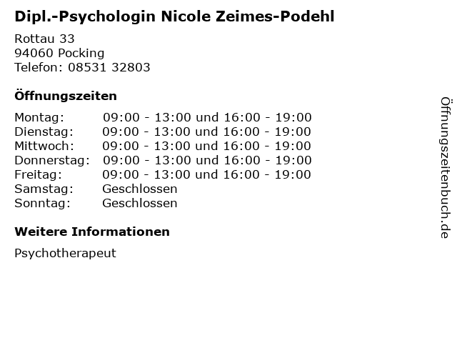 Branchen & Suchbegriffe zu Dipl.-Psychologin Nicole Zeimes-Podehl:arzt, dipl., nicole, podehl, psychologin, psychotherapeut, sprechzeiten, zeimes |