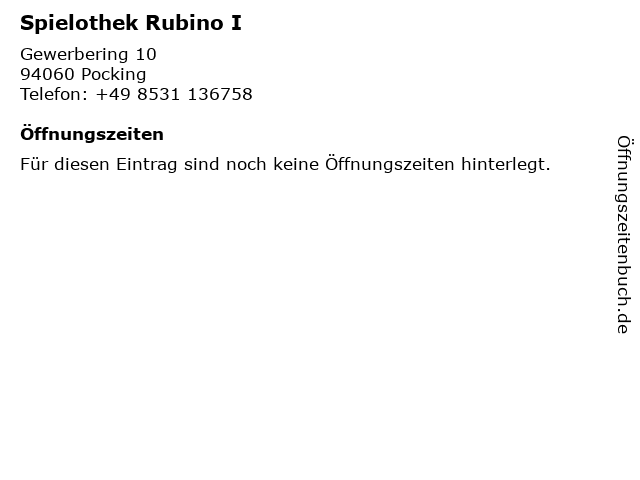 | Öffnungszeiten Spielothek Rubino I in Pocking anzeigen | |