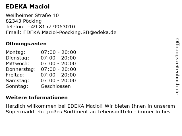 | Öffnungszeiten EDEKA Maciol in Pöcking anzeigen | |