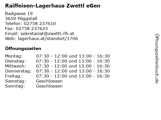 5 SPAR Supermarkt - Raiffeisen-Lagerhaus Zwettl eGen - Haus & Garten (Entfernung: 0,02 km) Badgasse 19, 3650 Pöggstall 6 Raiffeisen-Lagerhaus Zwettl eGen - Genol Tankstelle (Entfernung: 10,33 km) Hauptstraße 81, 3683 Altenmarkt im Yspertal |