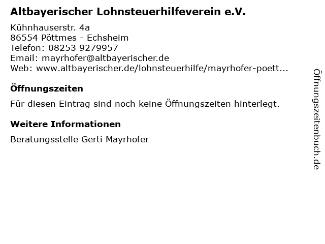 Branchen & Suchbegriffe zu Altbayerischer Lohnsteuerhilfeverein e.V.:altbayerischer, beratungsstelle, e.v., gerti, lohnsteuerhilfeverein, mayrhofer, steuer, steuerberatung |
