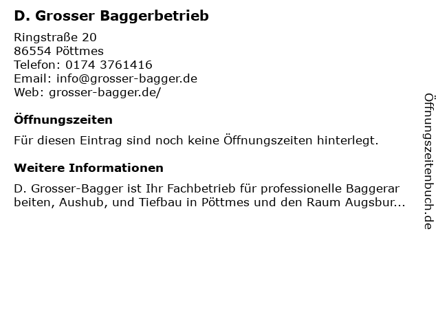 | Öffnungszeiten D. Grosser Baggerbetrieb in Pöttmes anzeigen | |