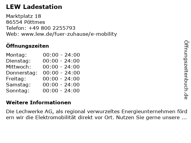 Öffnungszeiten LEW Ladestation in Pöttmes anzeigen | |
