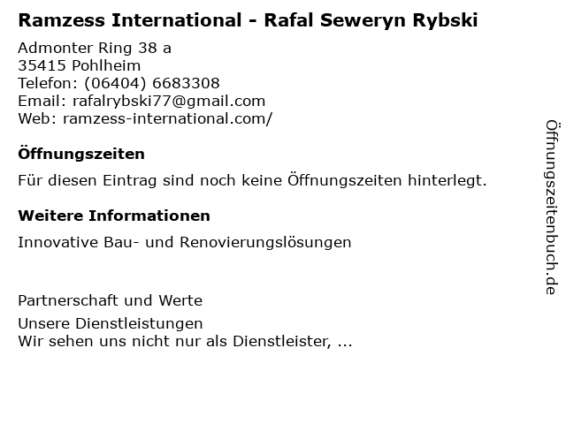 | Ramzess International - Rafal Seweryn Rybski anrufen | |