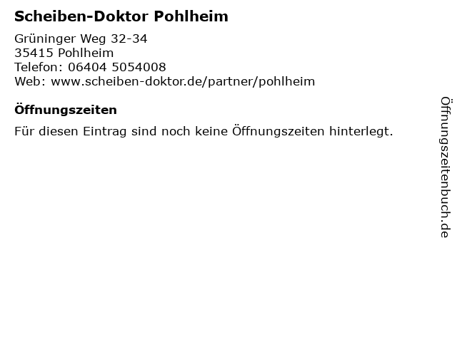 | Öffnungszeiten Scheiben-Doktor Pohlheim in Pohlheim anzeigen | |