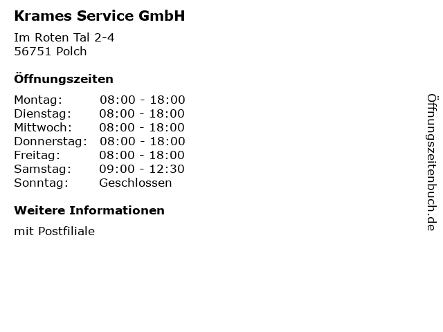 | Öffnungszeiten Krames Service GmbH in Polch anzeigen | |