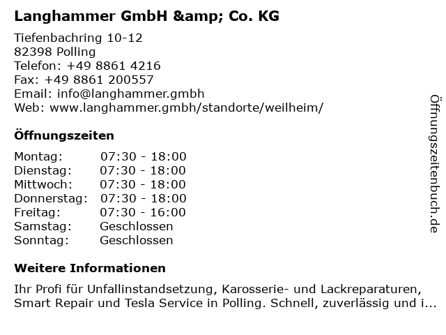 | Öffnungszeiten Langhammer GmbH & Co. KG in Polling anzeigen | |