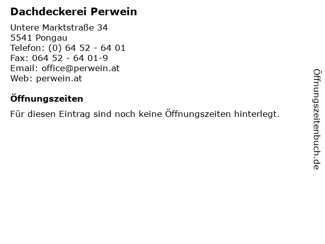 | Öffnungszeiten Dachdeckerei Perwein in Pongau anzeigen | |