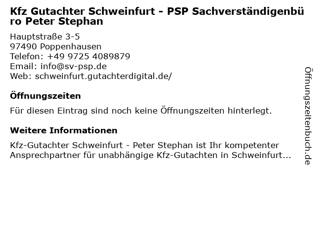 | Kfz Gutachter Schweinfurt - PSP Sachverständigenbüro Peter Stephan anrufen | |