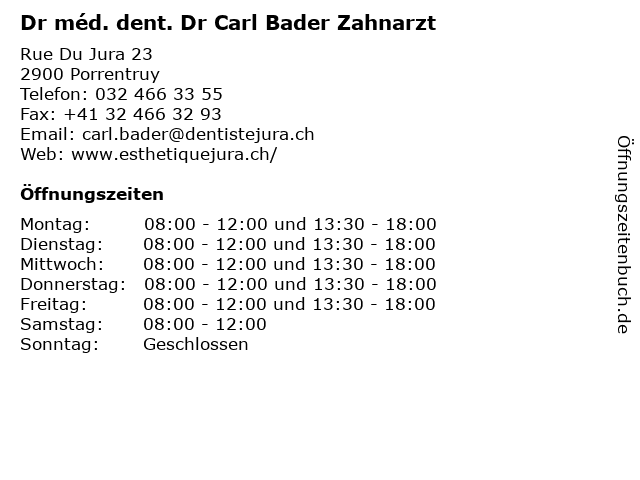 Branchen & Suchbegriffe zu Dr méd. dent. Dr Carl Bader Zahnarzt:bader, carl, dent., dr, kosmetische dermatologie, méd., schönheitssalon, zahnarzt, zahnheilkunde |