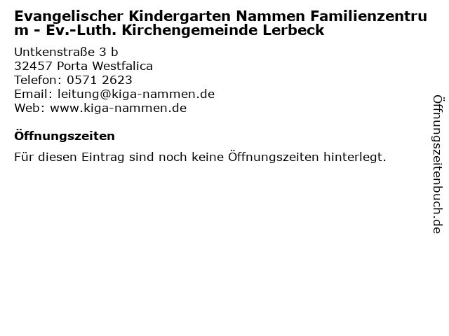| Evangelischer Kindergarten Nammen Familienzentrum - Ev.-Luth. Kirchengemeinde Lerbeck anrufen | |