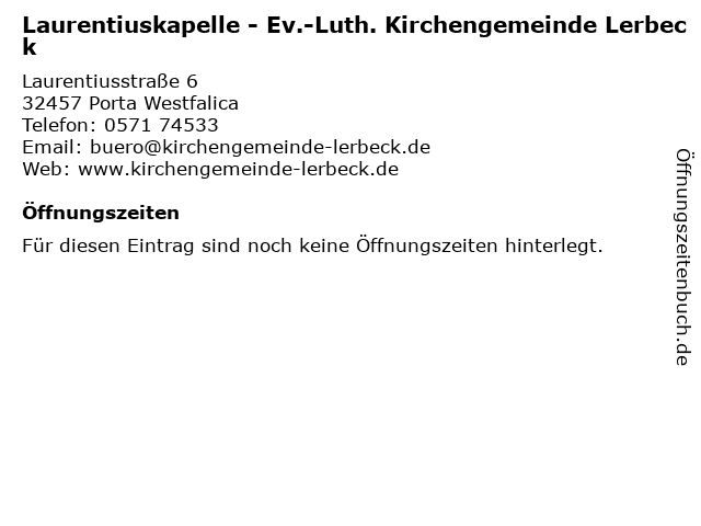 | Laurentiuskapelle - Ev.-Luth. Kirchengemeinde Lerbeck anrufen | |