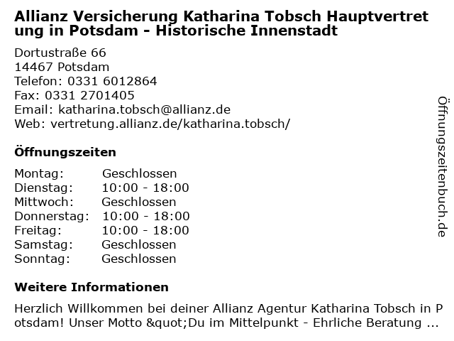 Branchen & Suchbegriffe zu Allianz Versicherung Katharina Tobsch Hauptvertretung in Potsdam - Historische Innenstadt:allianz, altersvorsorge, autoversicherung, berufshaftpflichtversicherung, berufsunfähigkeitsversicherung, gebäude- und hausratsversicherung, gewerbeversicherung, hauptvertretung, historische, innenstadt, katharina, lebensversicherung, pflegeversicherung, tobsch, versicherung |